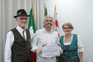 Os membros da comissão foram oficialmente empossados pelo prefeito de Blumenau, Egidio Ferrari, no dia 20 de fevereiro de 2025. Comissão é chefiada pelo secretário municipal de Cultura e Relações Institucionais, Sylvio Zimmermann Neto, tendo a historiadora Sueli Petry como suplente. Também integram referida comissão Ulysses Kreutzfeld e Jefferson Bonelli, da Secretaria de Turismo de Blumenau, Andrey Taffner e Deputado Vicente Caropreso, pela comissão estadual dos 150 anos, Mario Tachini e Marilucia Mattedi, pelo Lira Circolo Italiano di Blumenau, e Norma Maria Da Rui, pela agência consular italiana de Blumenau.
